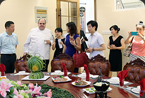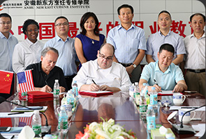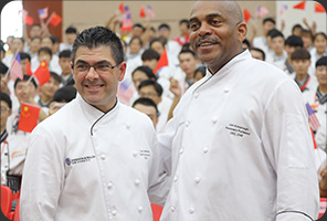 美国强生威尔士大学杰瑞·拉努扎院长和安徽新东方烹饪专修学院朱道付院长接受媒体采访