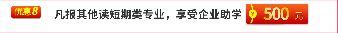 报读短期创业培训5000元(含)以上创业班及套餐给予500元/项优惠。