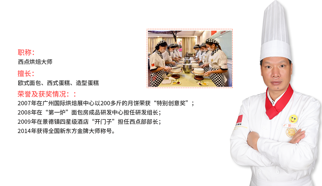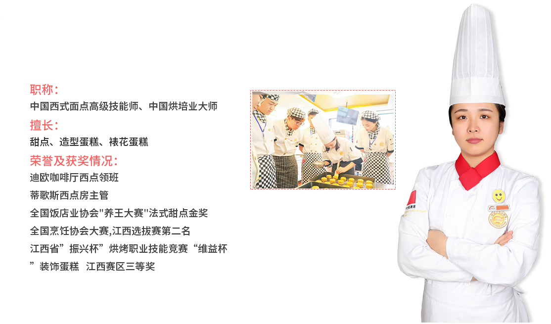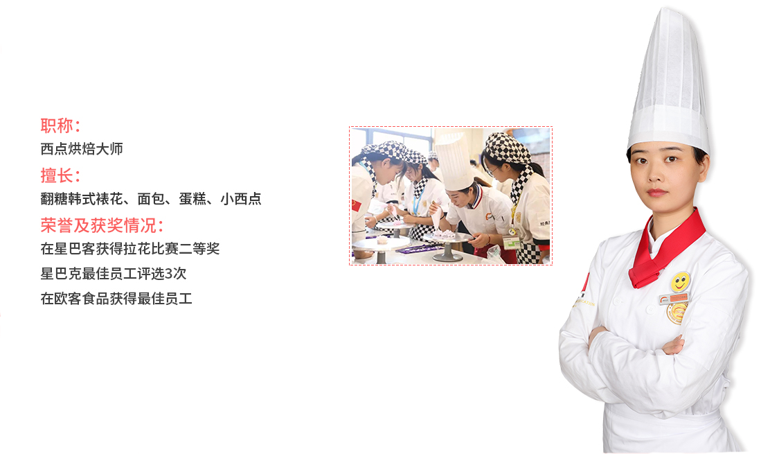 同时还要系统学习:皇家翻糖蛋糕、订做大型婚礼蛋糕、法式甜品(如皇家歌剧院蛋糕、意大利提拉米苏、星空慕斯、拿破仑)。