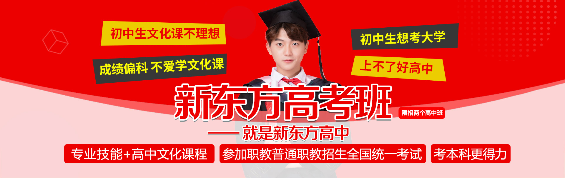 中考成绩不理想,想上大学,但分数不允许,报读新东方高考班,迈向新起点。