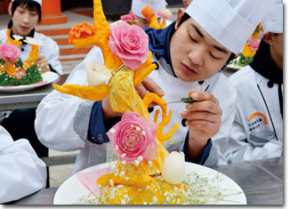 1、基本功:有实操老师系统传授各类刀法、花刀、雕刻、花色拼盘、盘饰、颠勺、装盘技术。2、以经典名菜、流行菜、酒店特色菜、地方特色菜、家长土菜、快餐技术、宴席技术与制作为主,各式的砂钵、干锅、锅仔等多种中高档特色菜肴的制作技术。