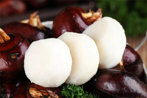 马蹄虽然外皮乌黑,果肉却是洁白如雪,生吃的话清甜多汁,跟雪梨有的一拼,脆爽可口,所以有“地下雪梨”称号。又因为马蹄是药食两用的食材,既可以作为满足口腹之欲的食物,又能够作为治疗疾病的药材,它还有个响当当的称号,那就是“江南人参”。