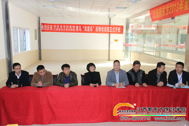 南昌县黄马乡为提升“农家乐”品牌形象、为掌握“农家乐”特色菜肴的制作工艺,提升“农家乐”文化层次慕名找到我院,为其提供为期22天,15人的团体厨师培训。11月25日南昌县黄马“农家乐”厨师培训班在我院隆重开班。