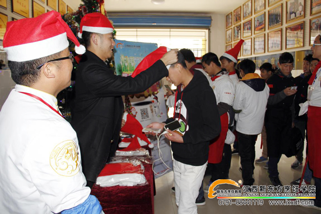 四海平安夜,五洲圣诞节。为在温馨热闹的圣诞节留下美好回忆,12月24日中午,“浓情新东方 圣诞助学金”活动在我院青云谱校区、小蓝校区同时开展,充满圣诞特色的场景布置和精彩纷呈的活动迅速吸引了大批同学积极参与。