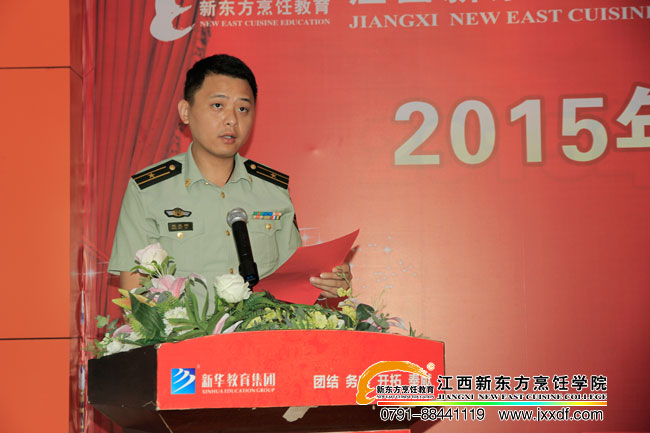 随后武警水电二总队后勤部张部长在结业典礼上发表了讲话,他指出,部队的厨师对于保障部队的生活起了非常大的作用,是一个使命重大的光荣岗位,部队学员们通过在江西新东方短短的一个月的学习培训,收获颇多,不仅强化了为官兵的服务意识,还提高了专业技术水平,这次培训增强了学员们站在三尺灶台上服务部队的信心,并且希望学员们以后可以学以致用,把在江西新东方学校到的厨艺带回部队,服务部队。并向我校赠送了锦旗。