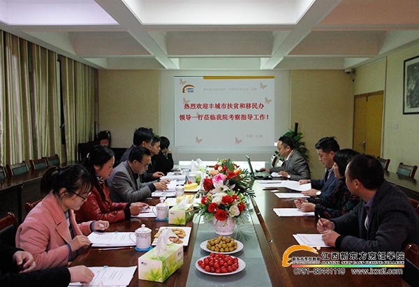 3月3日,丰城市移民办主任邹兴国主任,丰城市移民办主任兼党支部书记熊健,丰城市扶贫和移民办副主任徐文,丰城市扶贫和移民办副主任孙洪根,丰城市扶贫和移民办科长夏莉、丰城市扶贫和移民办科长李小萍等一行莅临我院参观考察,对我院办学情况及贫困助学开展情况进行调研考察,我院校长杨中国、校长助理喻军辉、对外合作部主任刘勤顺负责陪同考察。