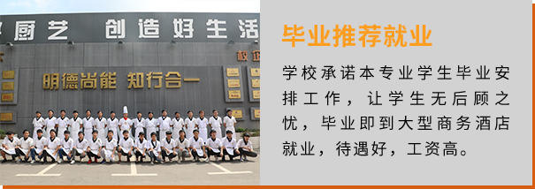 学生来校参观满意后报名,入学即签订就业协议,本专业合格毕业生推荐到星级宾馆、高级酒店、西餐厅等餐饮企业就业学校打造五重就业保障,四项就业指导,两大就业体系为学生和用人企业搭建“双赢”平台,为学生成功就业提供有力保障。