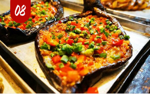 大型原料烤制(全茄)、海鲜类烤制(小黄鱼、鱿鱼)、铁板烧系列