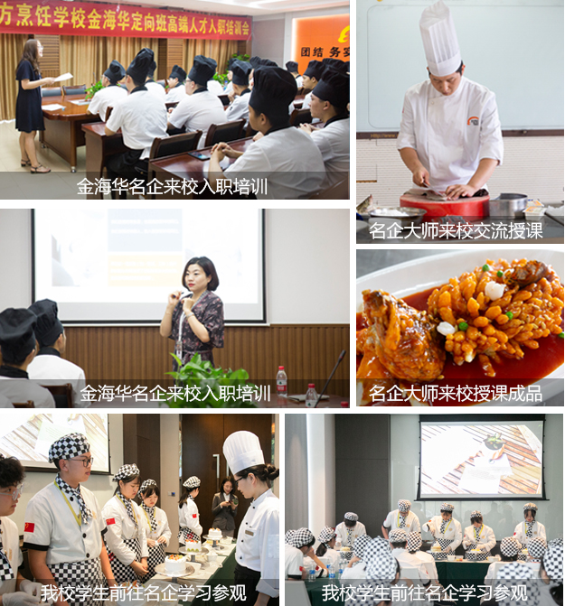 签约定向班的那一-刻,就意味着学员搭上了名企的就业直通车。在日后的学习生活中,他们将在以市场为导向的零距离实践教学体系、与市场零距离接轨的教材体系中,顺应企业的发展要求,成为具备较强实践能力及创新能力的高素质烹饪技术人才,让学生不出校门就能轻松就业。