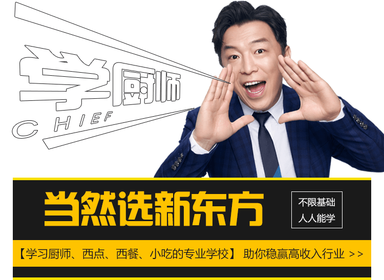 完善的专业体系适合各类人群新东方烹饪教育,在对餐饮市场进行充分调研的基础上,根据餐饮行业对烹饪人才的需求,对中国各种经典菜系及地方特色菜系进行深入研发,开设了“以大专教育为龙头,以高技、中技为主体,以长短期培训为补充”的中烹、西点、西餐、小吃等多种专业,学员轻松就业和创业。