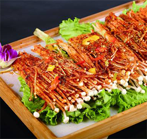 。 素菜类:烤面筋、烤韭菜、烤油馍、烤鱼豆腐、烤金针菇、烤豆角、烤娃娃菜、烤土豆片。