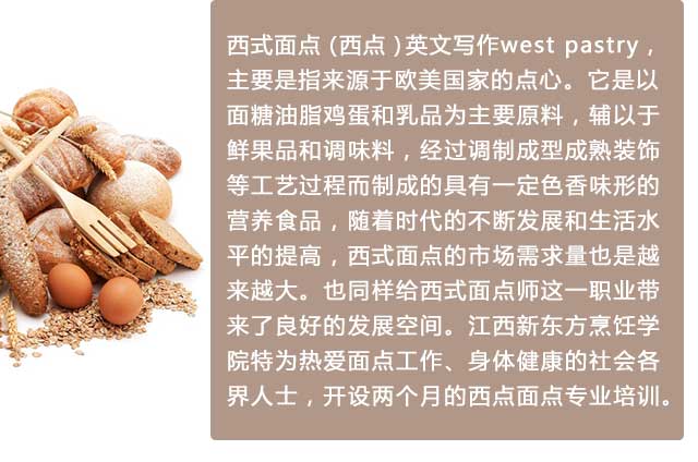 江西新东方烹饪学校是江西地区目前规模大、专业的烘 焙技能培训学校,专注烹饪教育近27年。