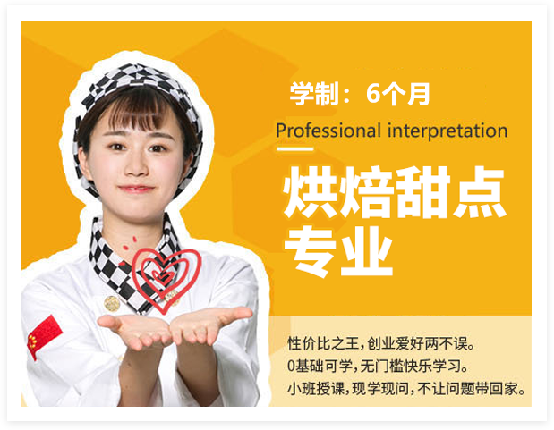 通过6个月的学习,熟练掌握西点原料及营养知识,精通西点制品制作原理,西点房经营管理等相关知识。熟练掌握西点原料及营养知识,精通西点制品制作原理,西点房经营管理等相关知识。重点培养上岗能力,精通各类经典的西点和市场流行的西点产品,能胜任设计各类不同档次的西点展台。