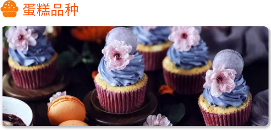 戚风蛋糕、海绵蛋糕、英式磅蛋糕、果子蛋糕、水蒸蛋糕、乳酪慕斯、盒子蛋糕、陶艺蛋糕、个性蛋糕如:芭比蛋糕、情景蛋糕、花卉蛋糕、小汽车蛋糕、彩虹蛋糕、千层蛋糕、班戟、毛巾卷、数字蛋糕、半熟芝士、舒芙蕾、法式红酒蒸蛋糕、芋泥盒子、等。