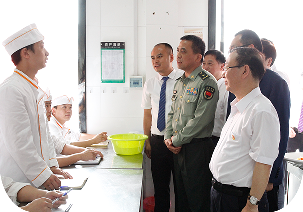 在北京朗杰常务副总经理兼对外合作中心负责人张宏、江西新东方烹饪学院院长曹经伟、副院长喻军辉等校领导的陪同下,退役军人事务部一行领导先后参观了学校的咨询中心、体验馆、示范教室、实习大厅、模拟餐厅、校园环境等,现场考察了退伍军人实习情况,并与退伍军人学员亲切交谈,他鼓励学员们珍惜国家的安置政策和学校提供的平台,充分发挥自己的个人素养,发扬部队的优良作风,传承工匠精神,为实现个人价值和社会价值而不懈努力。