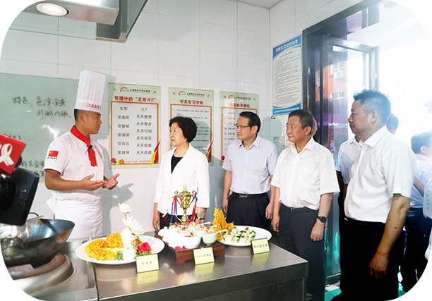 中国东方教育董事会主席兼执行董事吴伟、中国东方教育集团常务副总裁许绍兵、江西新东方烹饪学院校长曹经伟全程陪同接待,先后参观了咨询服务中心、创就业指导中心、基本功实训区、理实一体化教室、教学成果展示区等。