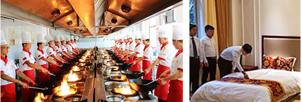 江西新东方烹饪学校采用“理论+实践”一体化教学模式。让学生在学习中感受和适应酒店的环境。