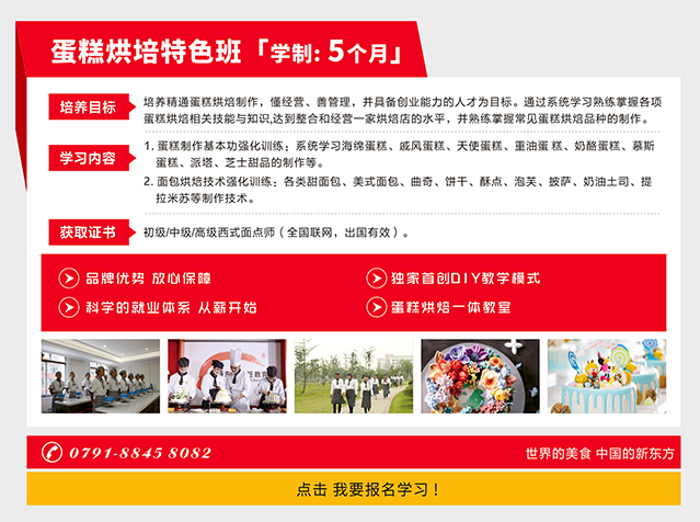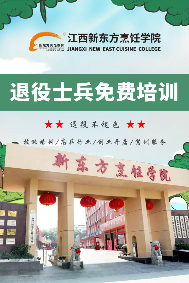 江西新东方烹饪学院创办于1988年,是江西省劳动和社会保障厅批准的一所正规专业厨师培训学校,江西省人民政府备案的国家大型的专业烹饪人才定点培训基地,具备高等职业资格鉴定的国家大型厨师培训学校,全国数千家高档星级宾馆、酒店人才定点委培的专业厨师学校。