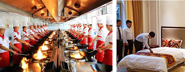 江西新东方烹饪学校采用“理论+实践”一体化教学模式。让学生在学习中感受和适应酒店的环境。