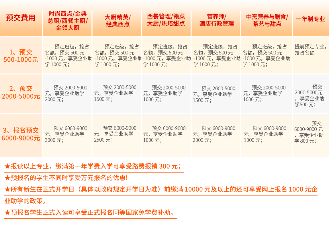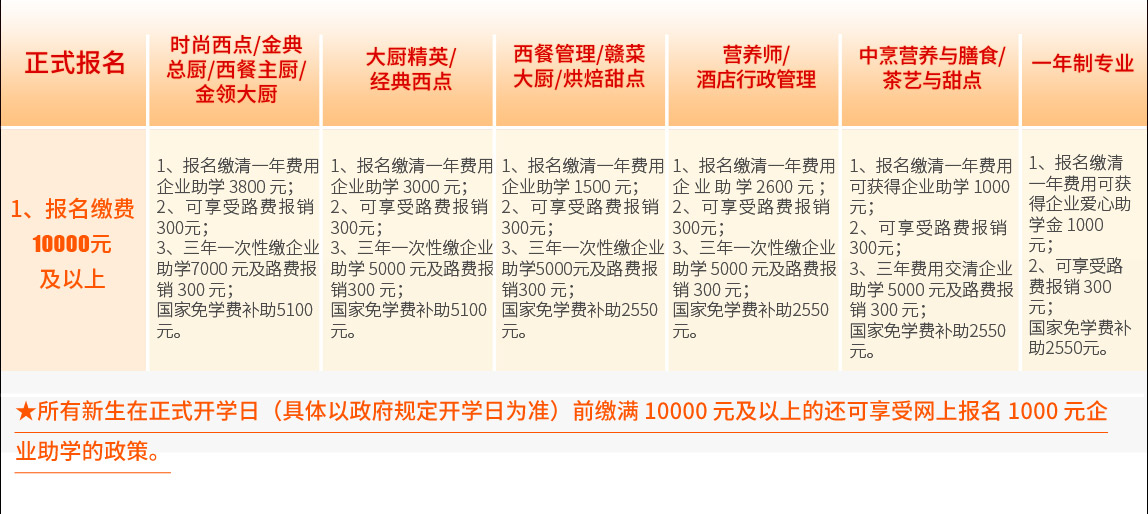2.凡预报名学生,免费赠送工具、书本、校服、床上用品、保险费用;
