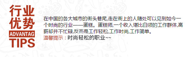 糕点俨然已成时尚与艺术的代言,作为食物上的艺术大师,工作环境无疑让不少人羡慕——坐在舒适的空调房内,只需通过现代化的设备设计出时尚的西点食物,工作简单轻松,薪资高,糕点已成为行业翘楚。