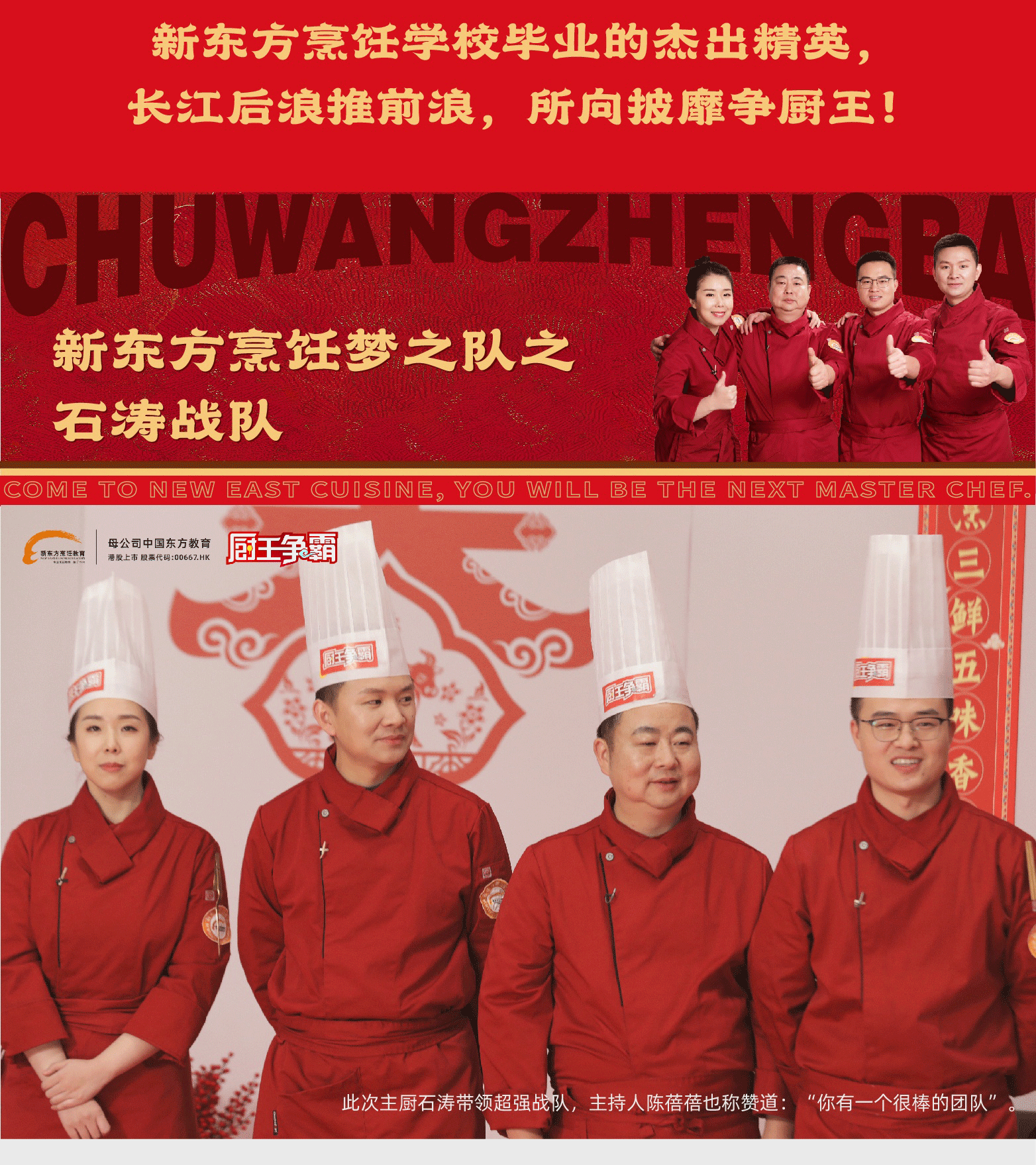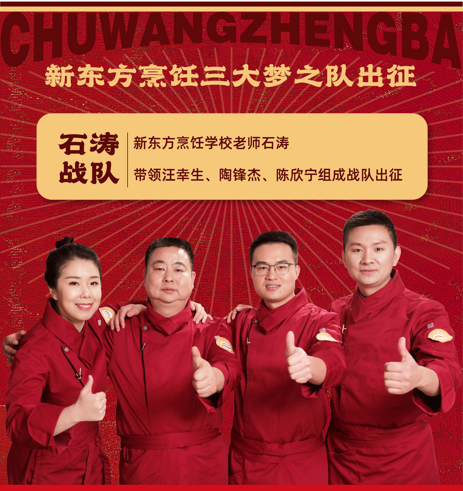 经历完9场精彩的中外对决,主厨王强带领的周后超、张运珠、黄思源这组战队要冲击决赛,他们被给予了厚望,要在决赛中全力以赴、全情投入、赛出水平、赛出风格、赛出成绩。
