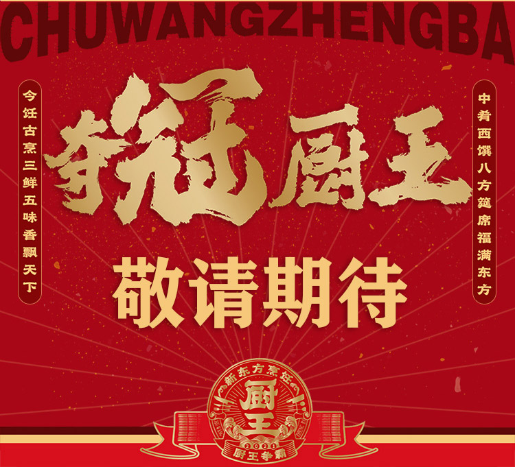 作为中国最有生命力的原创中外厨艺对抗IP节目,《厨王争霸》到今天已经走过了第九年。新起点,新气象,2021年《厨王争霸》春节版在央视财经频道,大年三十春晚前开播,正式开启新航程的第一章。