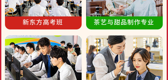 重磅消息!新职教法来咯,5月1日正式施行,国家承认职业教育是与普通教育具有同等重要地位,并且鼓励加快培养托育、美妆、家庭营养等方面技术技能人才,意味着职业教育将走向高技能、高学历、高素质的“高材生”发展道路!江西新东方为响应国家普职分类的号召,帮助初中毕业学子圆梦大学,开设多种职教高考专业,有幼师、茶艺、美妆、酒店管理以及烹饪类专业,另特别推出高考班,名师执教,人性管理,让你在新东方,另辟蹊径轻松上大学,五一小长假马上来咯,欢迎小伙伴们来校参观体验,百种美食盛宴等你来尝,假期不荒废,快人一步提前择校,劲爆助学活动让你纵享节日惊喜!!!