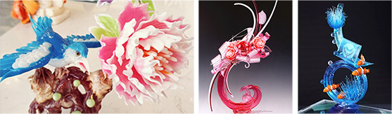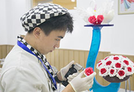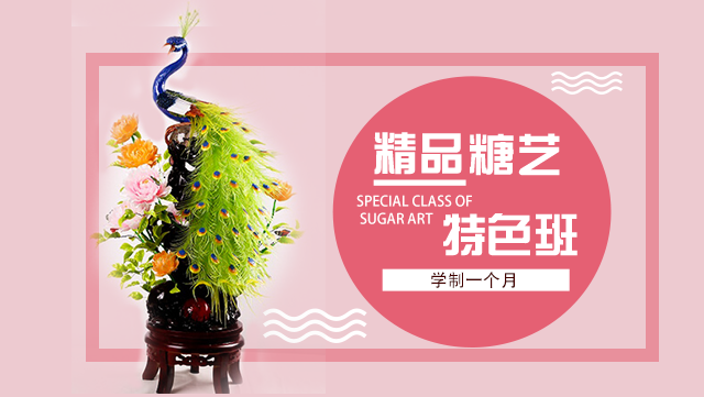 主要讲解糖艺原料、工具选用、糖的熬制、拉糖、吹糖训练、各式花朵、水果、动物、糖艺整体创作。