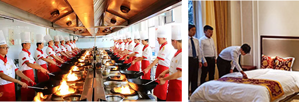 江西新东方烹饪学校采用“理论+实践”一体化教学模式。让学生在学习中感受和适应酒店的环境。