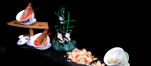 简介:这道菜的寓意是水到渠成和生机盎然,“新”在中文里的意思是开始,重新,这也是这道菜希望带给人们的一个好的寓意和吉祥的祝福。当然,这道菜,不仅仅是在名字上涵盖了新字,从菜色的设计上,以虾为主要食材,采用中西餐结合的烹饪料理方式,中餐部分以茉莉花作为引子,取其香味制作,西餐部分以番茄为味道的基底搭配对虾,味觉上的碰撞,让这道菜实现了一虾两吃,且中西结合的创新。在摆盘上,采用竹子和四川特色熊猫和盖碗茶餐具为设计元素,进行装饰。