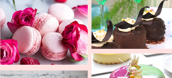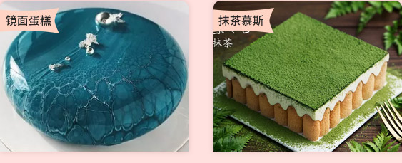 原料讲解和认识、法式甜点巧克力配件、糖花制作、马卡龙、闪电泡芙、酥皮泡芙、意大利提拉米苏、法式烤布蕾、柠檬塔、法国舒芙蕾、欧培拉、蒙布朗、玛德琳、轻芝士蛋糕、蓝莓重芝士蛋糕、巧克力熔岩、拿破仑等。